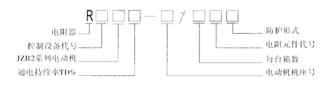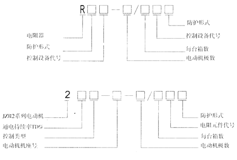 本系列成套电阻器主要用作交流起重机控设备的JZR2及JZRH2系列绕线式异电动机的启动、制动与调速电阻 一、型号含义